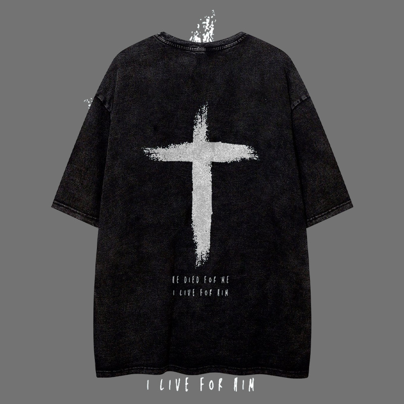 He Died Printed Washed T-shirt