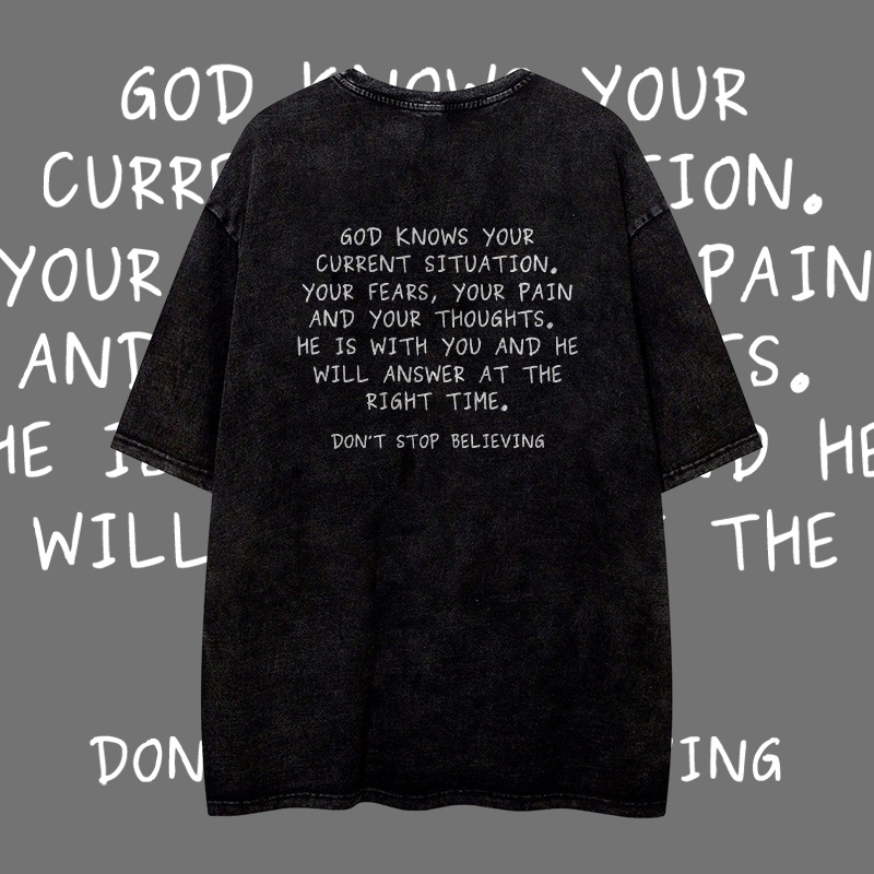 Don't Stop Believing Printed Washed T-shirt