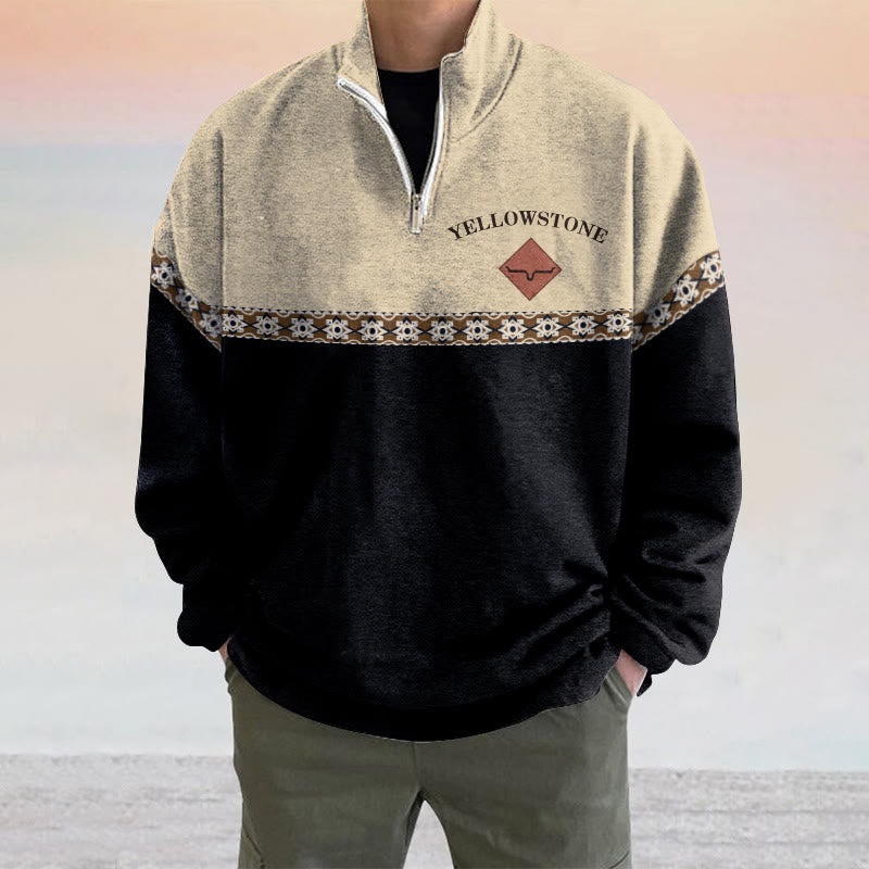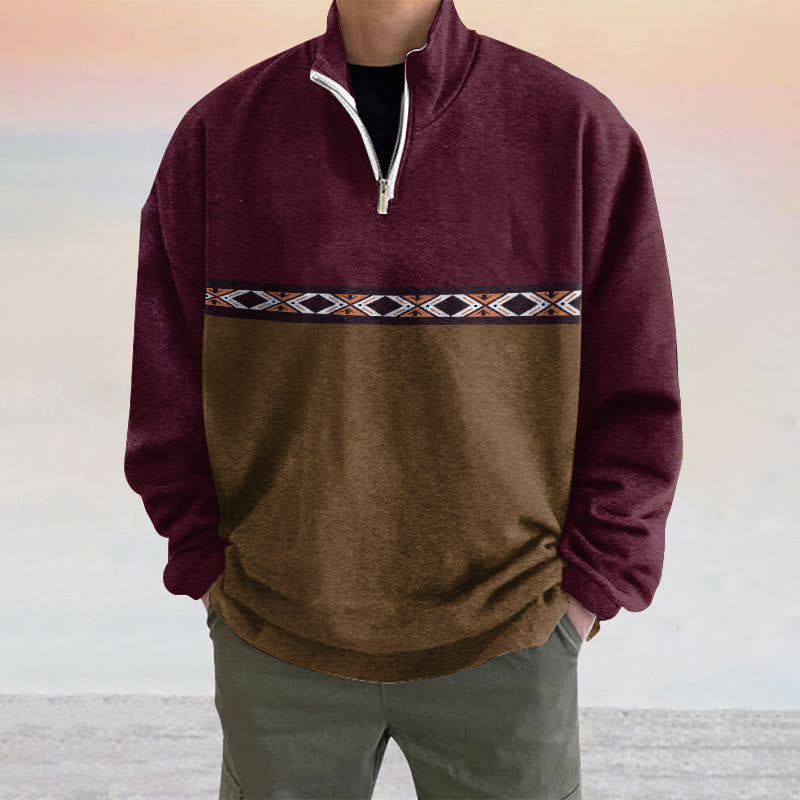 Vintage Contrast Color Totem Print Zipper Sweatshirt