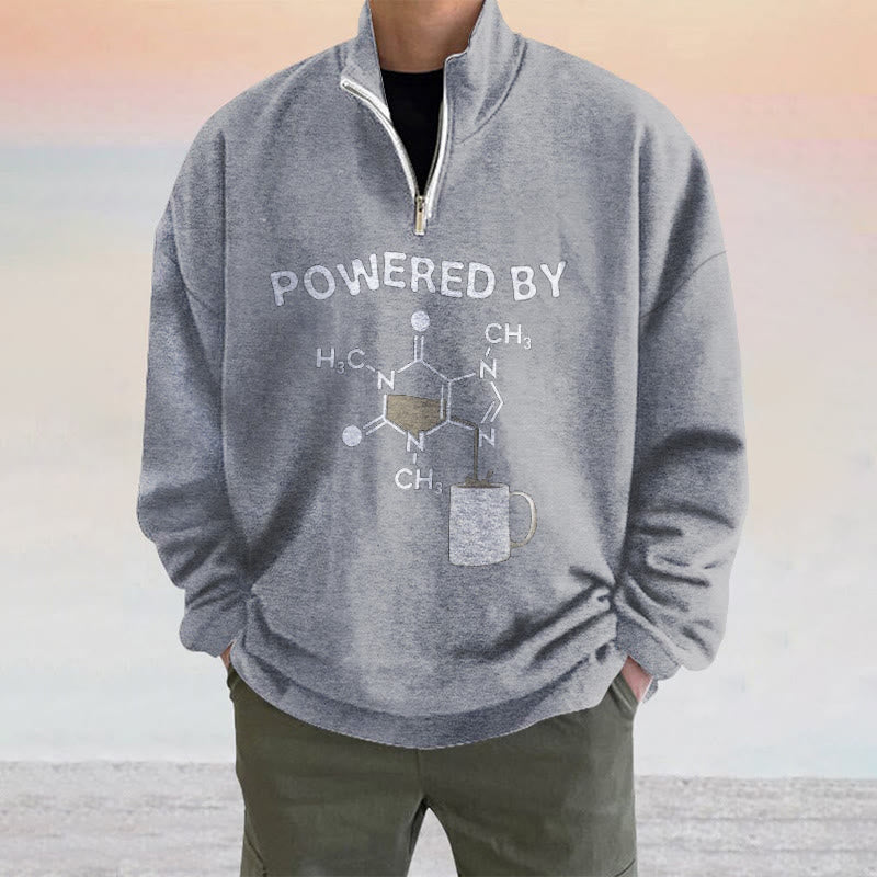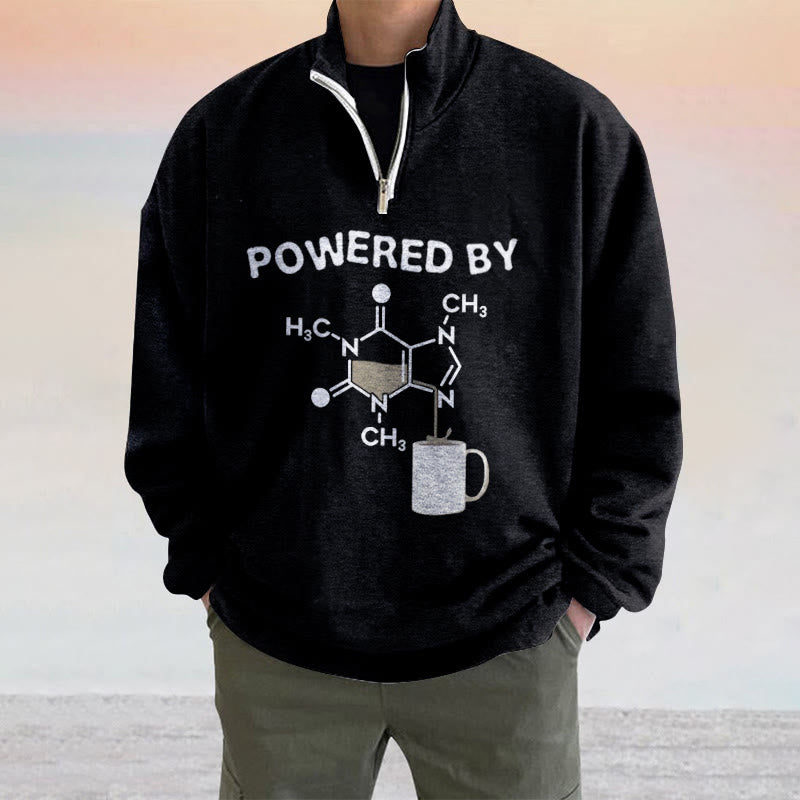 Vintage Powered By Caffeine Print Zip Up Sweatshirt