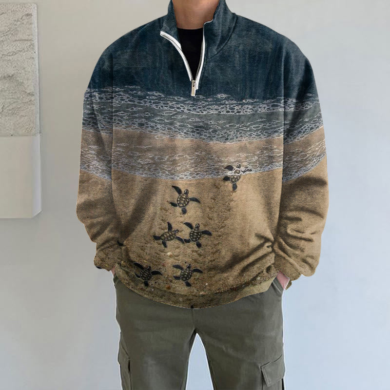 Baby Sea Turtles Beach Fiber Art Print Zip Sweatshirt