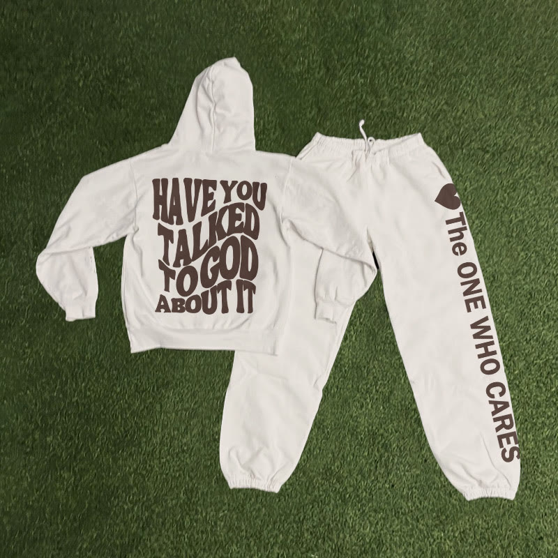Hip-hop Style Stay Humble Print Hoodie Two-piece Set