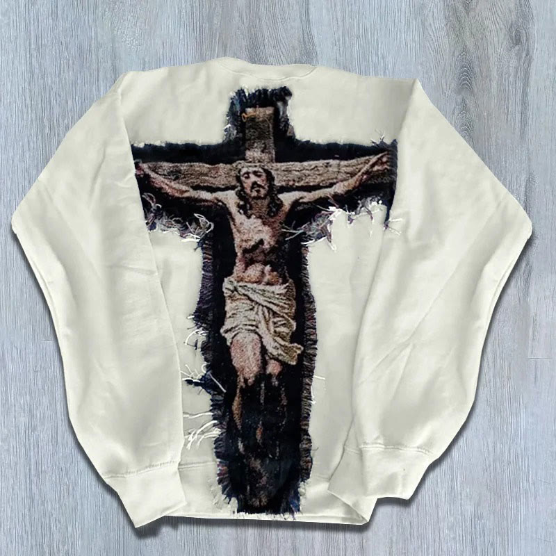 Vintage Jesus Cross Print Crew Neck Sweatshirt
