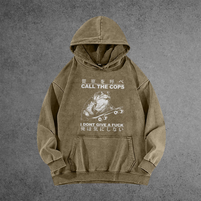 Unisex I Don't Care Frog Vintage Printed Washed Hoodie