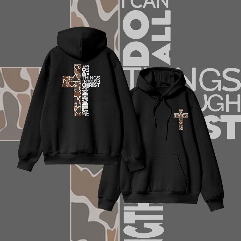 Unisex Camouflage Cross I Can Do All Things Through Christ Print Hoodie