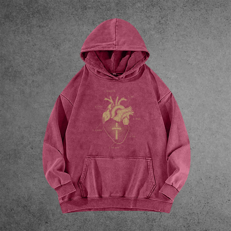 Unisex Search Me God And Know My Heart Printed Washed Hoodie