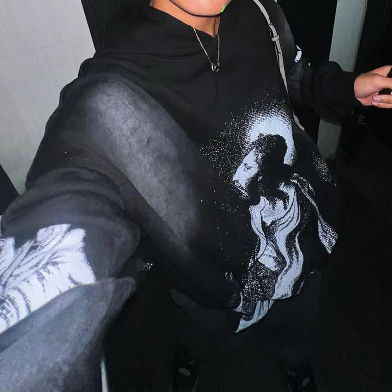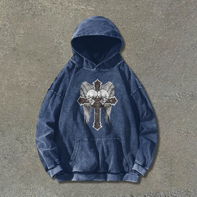 Unisex Dark Angel Cross Washed Hoodie