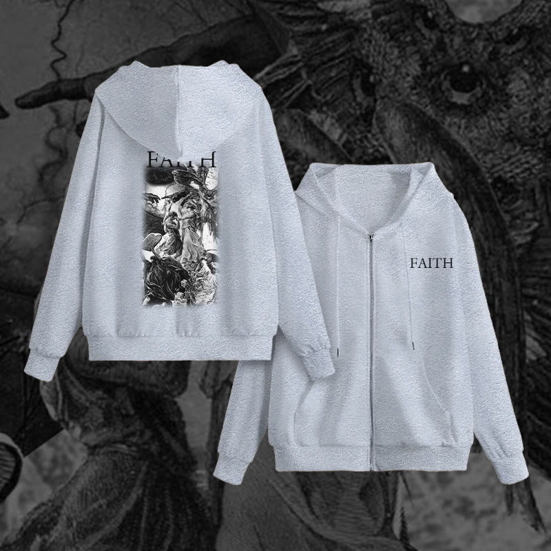 Unisex Faith Illustration Print Zip Up Hoodie