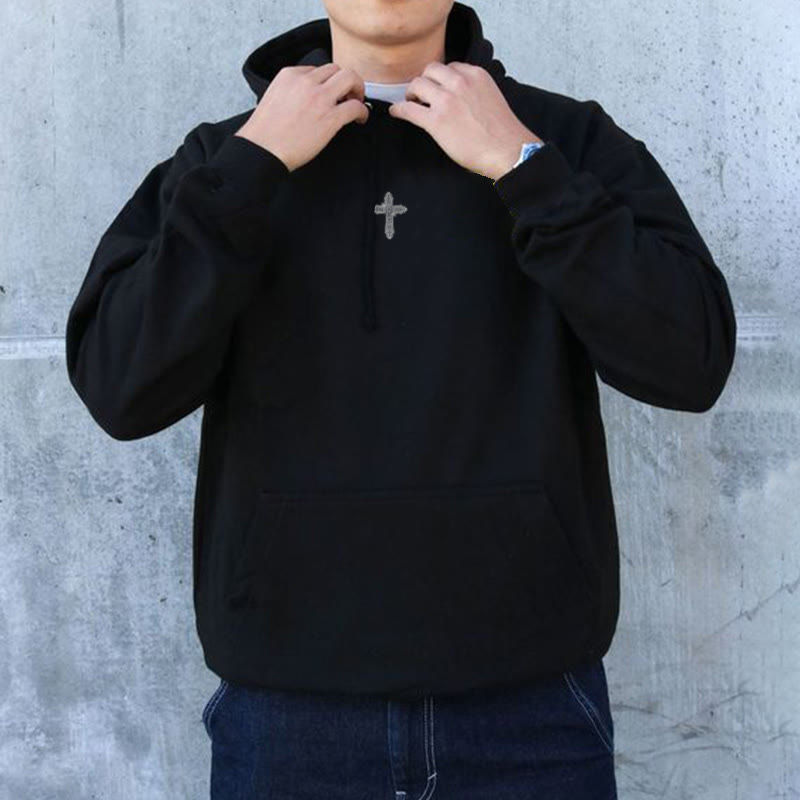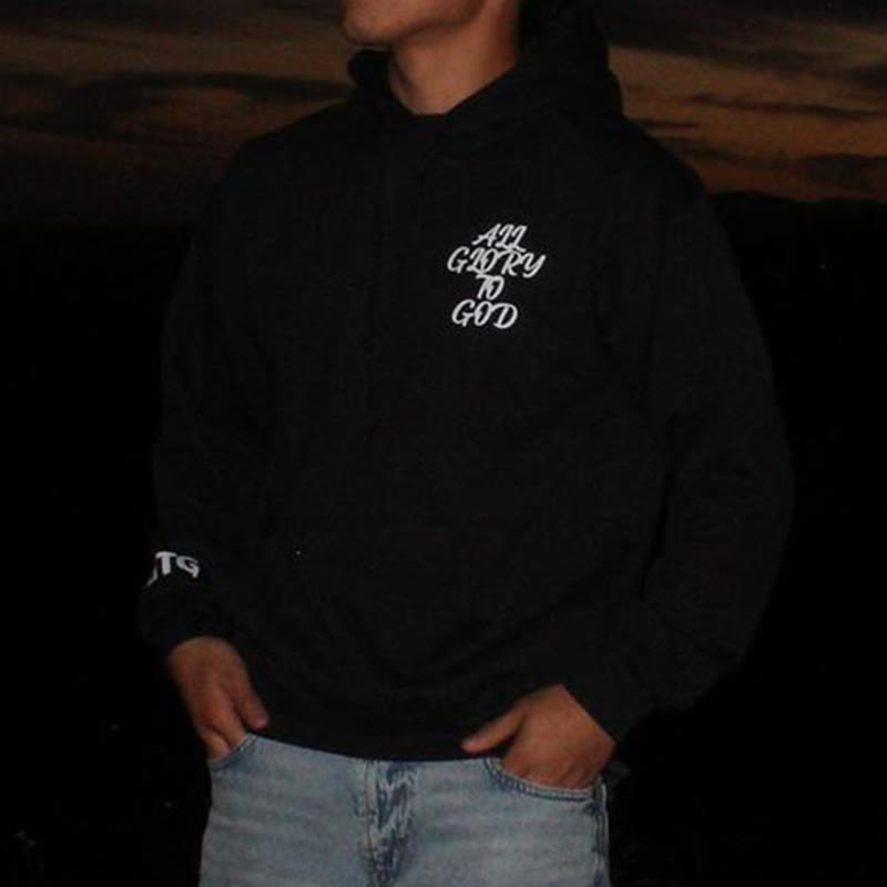 Street Style Just Here To Give God Glory Cross-letter Patch Embroidered Loose Unisex Hoodie