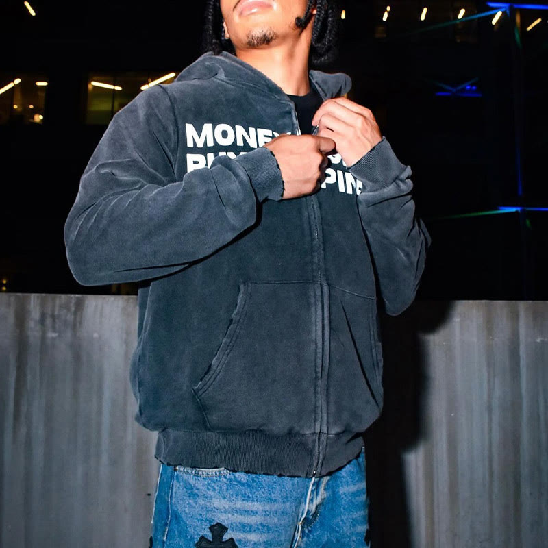 Unisex Money Doesn't Buy Happiness Print Zip Up Hoodie