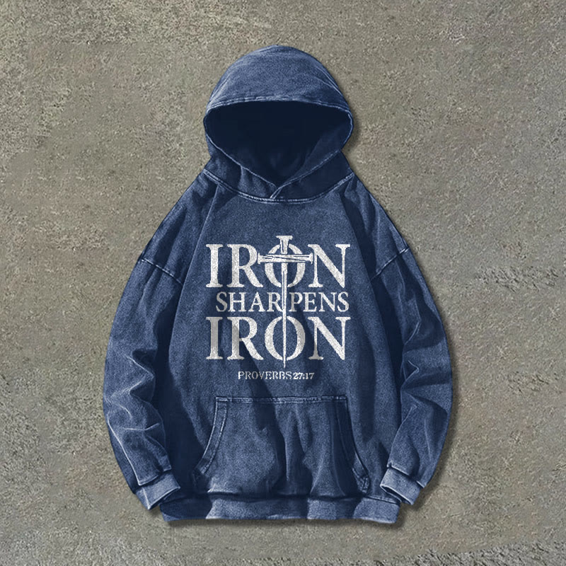 PROVERBS 27:17 Print Washed Hoodie