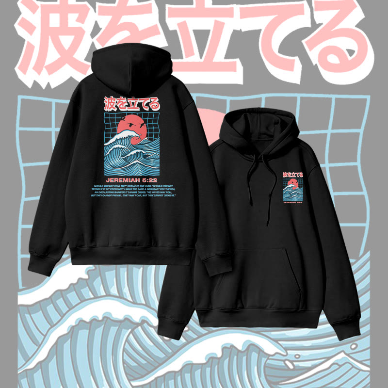 Unisex Japanese Wave Jeremiah 5:22 Print Hoodie