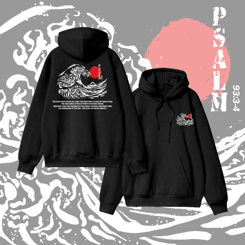Unisex Japanese Wave Psalm 93:3-4 Print Hoodie