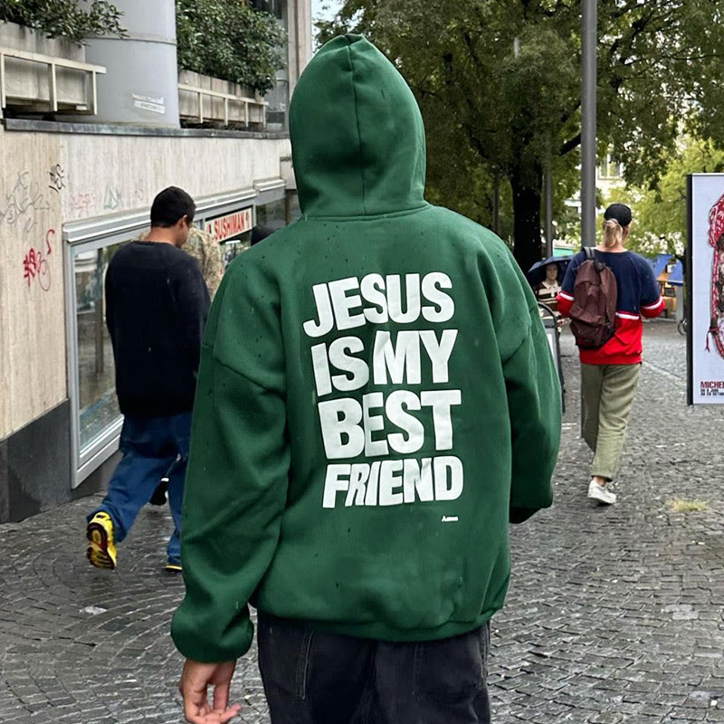 Unisex Jesus Is My Best Friend Print Streetwear Hoodie