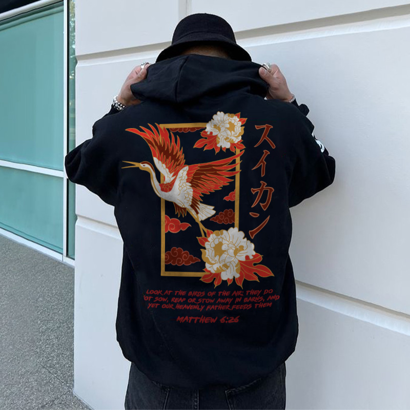 Unisex Tibetan Mahakala Japan Art Vintage Printed Washed Hoodie