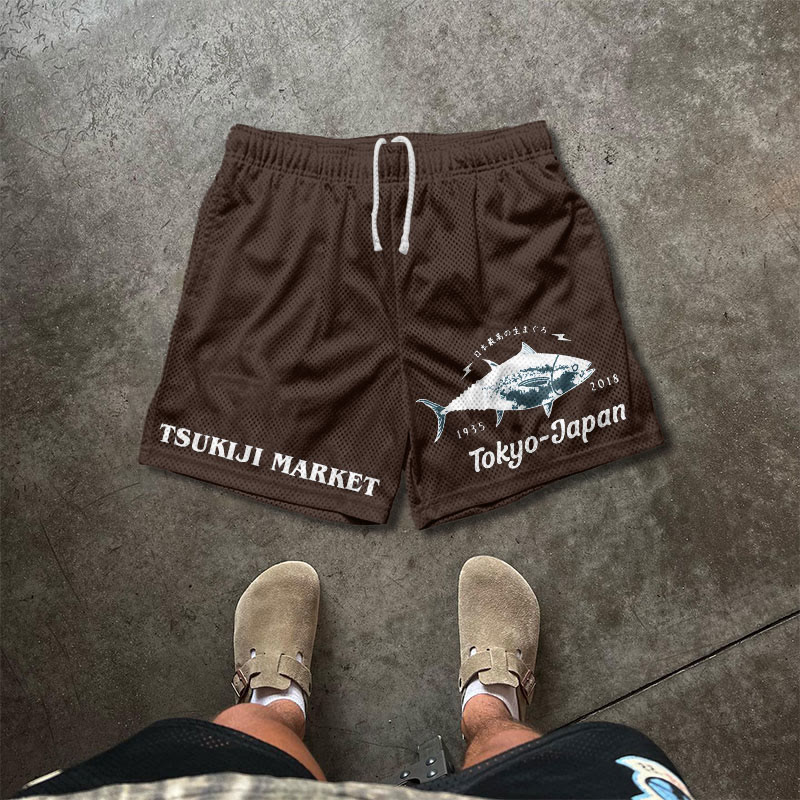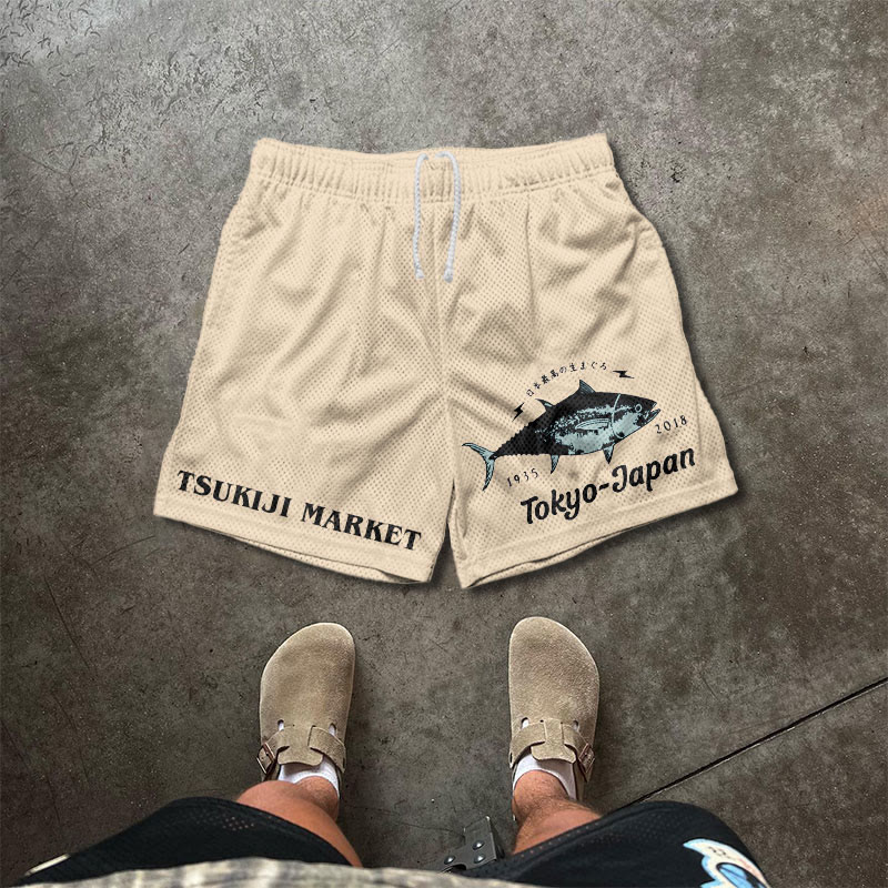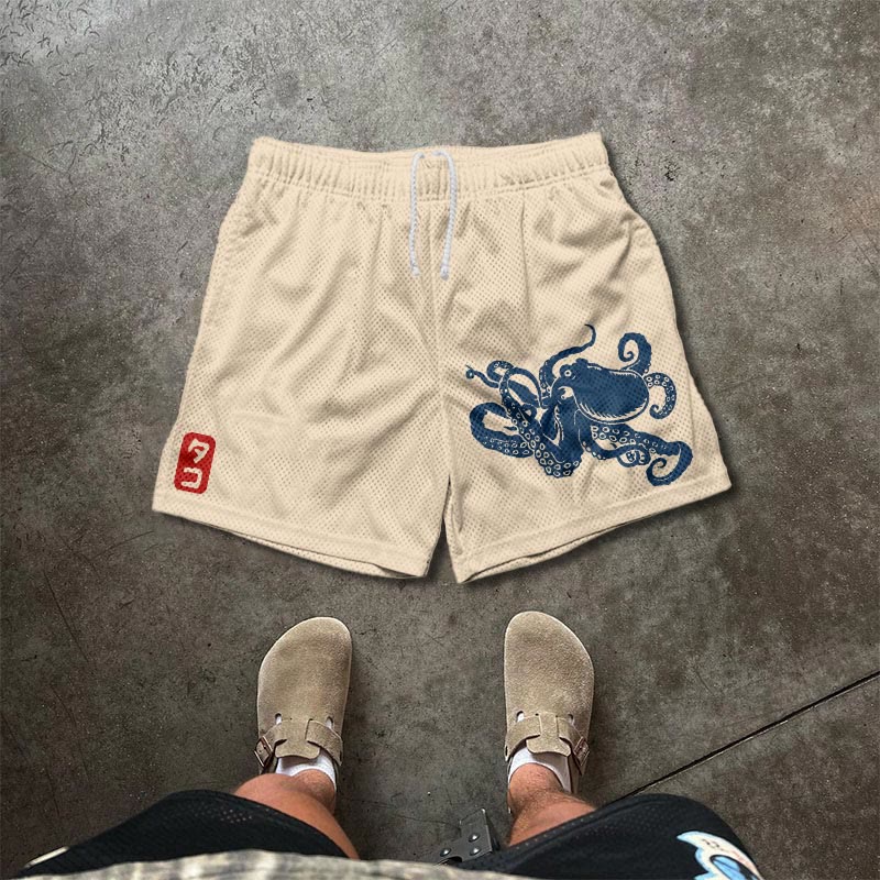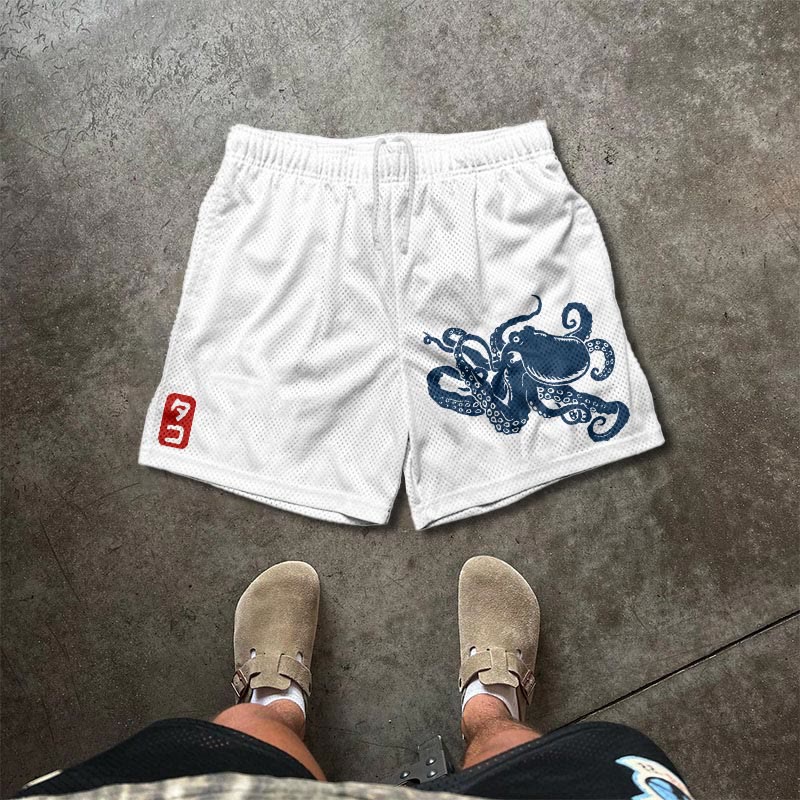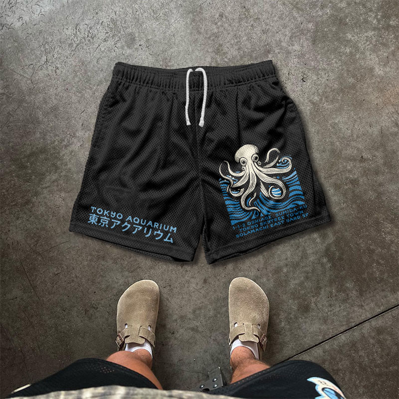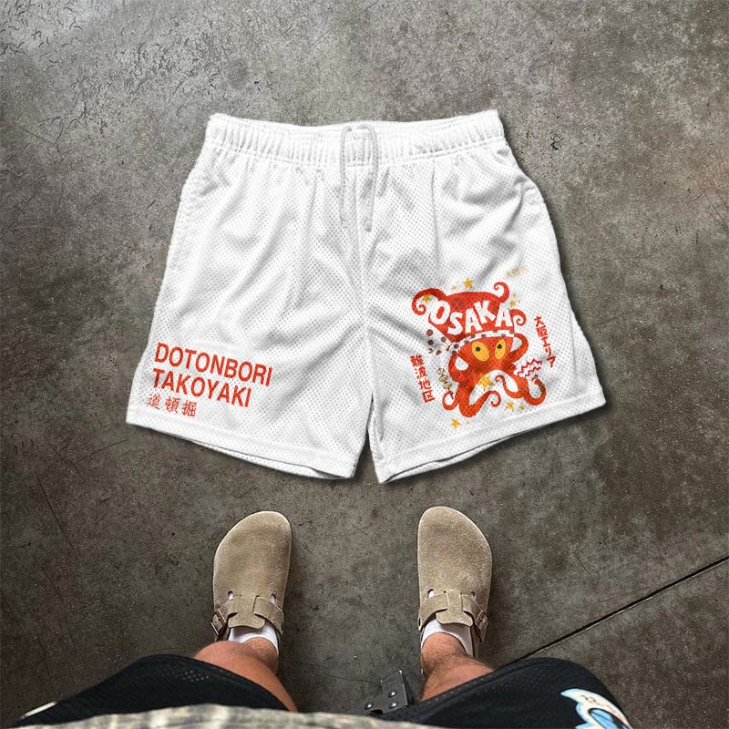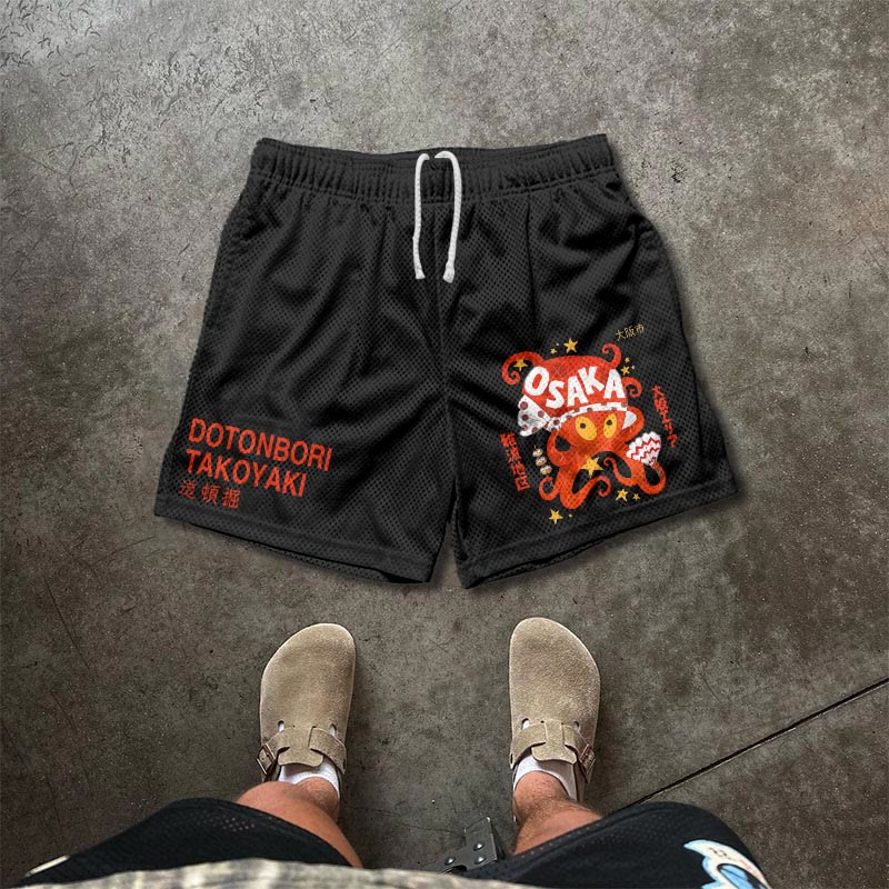 Osaka Dotonbori Octopus Print Causal Mesh Shorts
