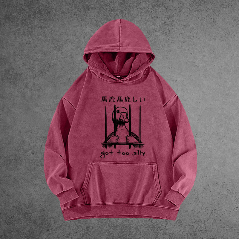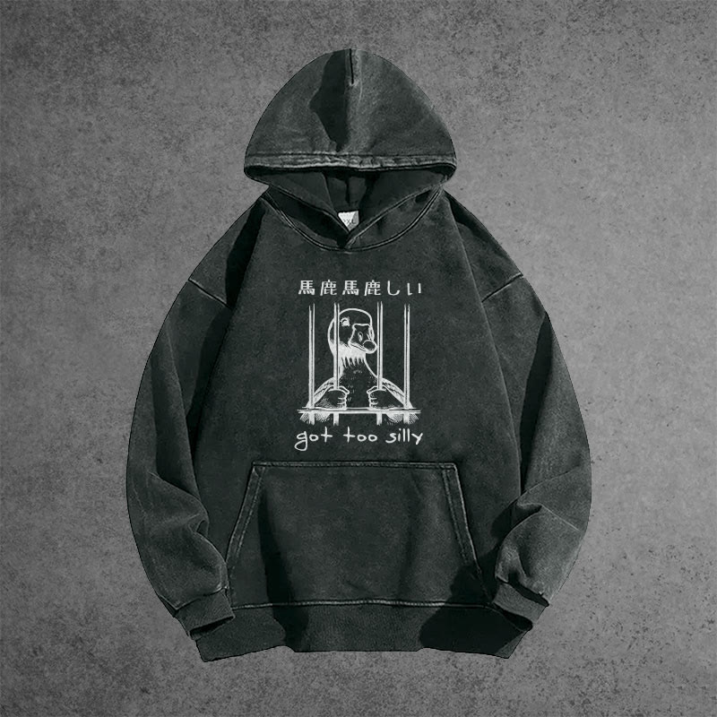 Unisex Got Too Silly Vintage Printed Washed Hoodie