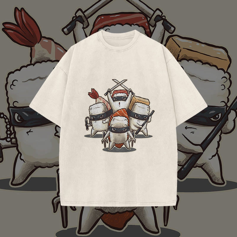 Unisex Funny Sushi With Weapon Art Print Acid Washed T-shirt