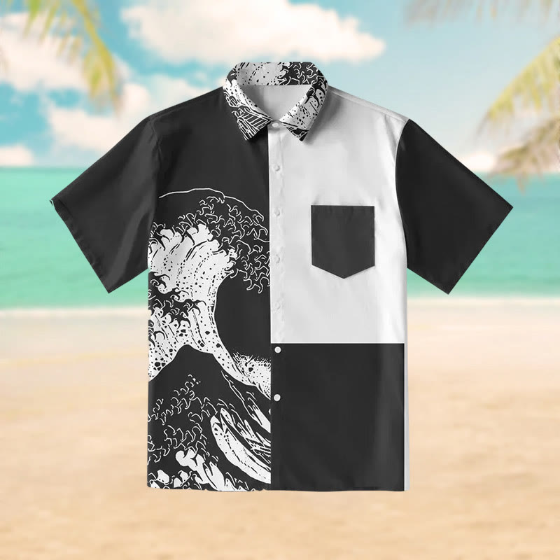 Unisex Hokkaido Wave Vintage Print Acid Washed T-shirt
