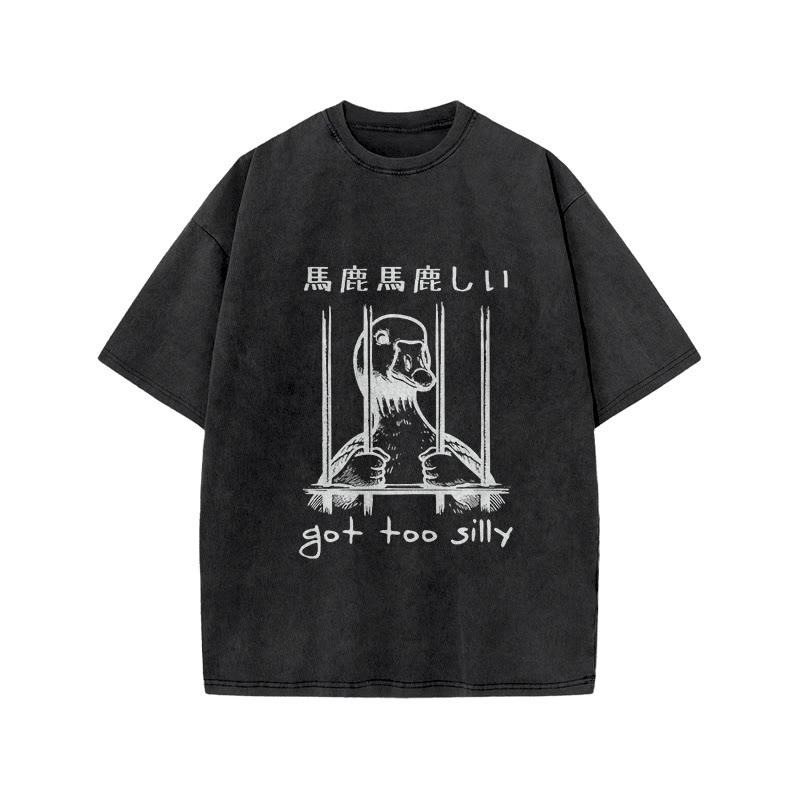 Unisex Got Too Silly Print Acid Washed T-shirt