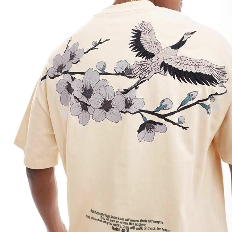 Unisex Japanese Style Plum Blossom And Crane Isaiah 40:31 Print T-shirt