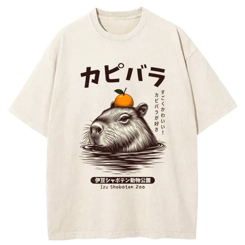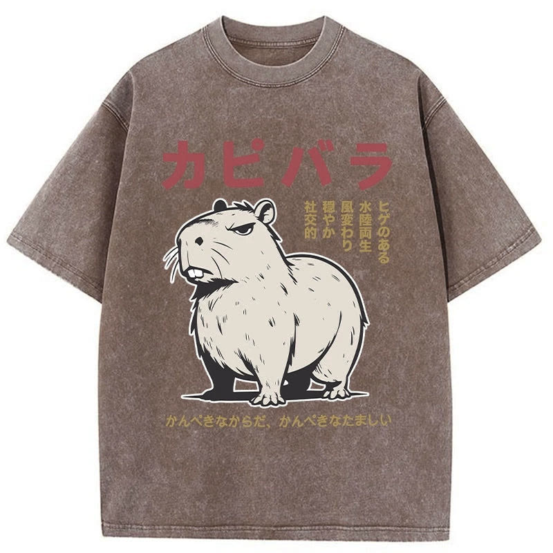 Unisex Angry Capybara Japan Print Acid Washed T-shirt