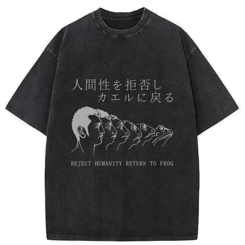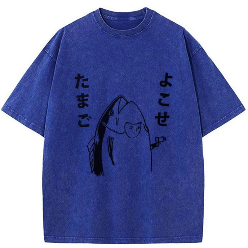 Unisex Give Me Egg Japanese Fish Print Acid Washed T-shirt