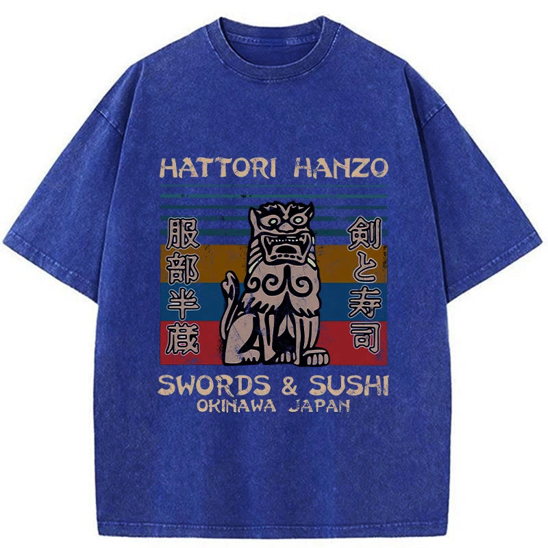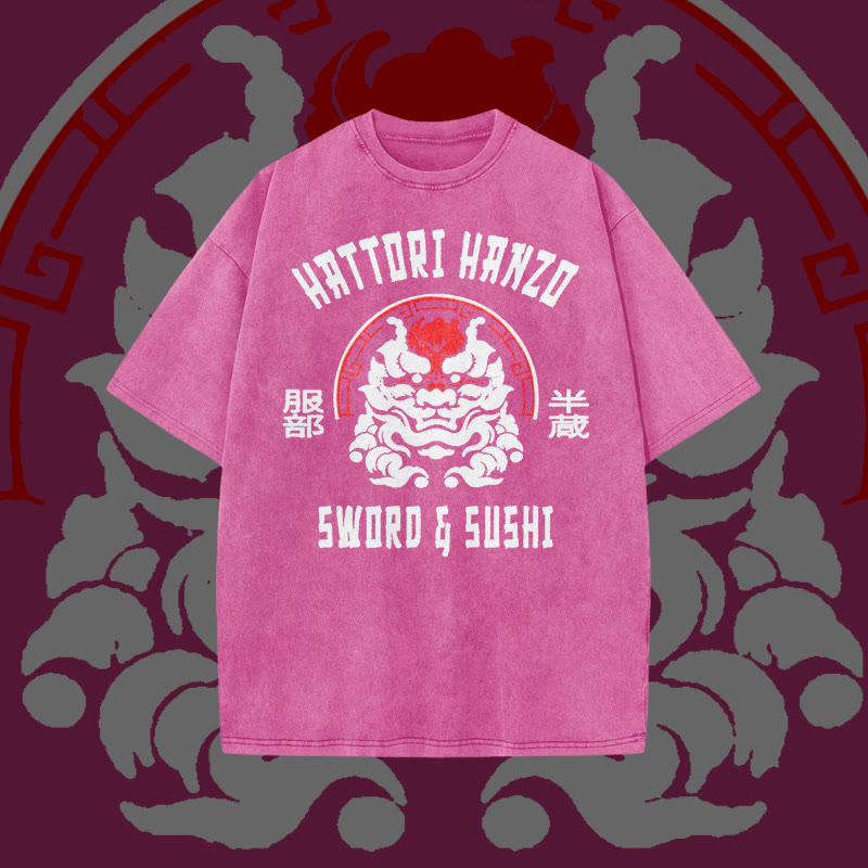 Unisex Hattori Hanzo Lion Japanese Print Acid Washed T-shirt