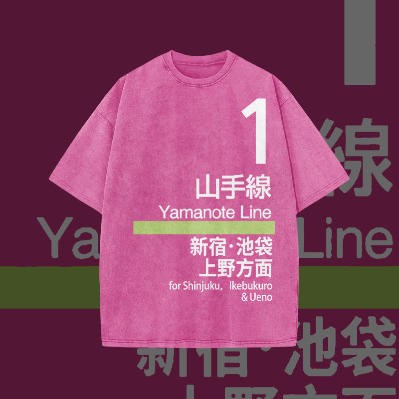 Unisex Yamanote Line Print Acid Washed T-shirt