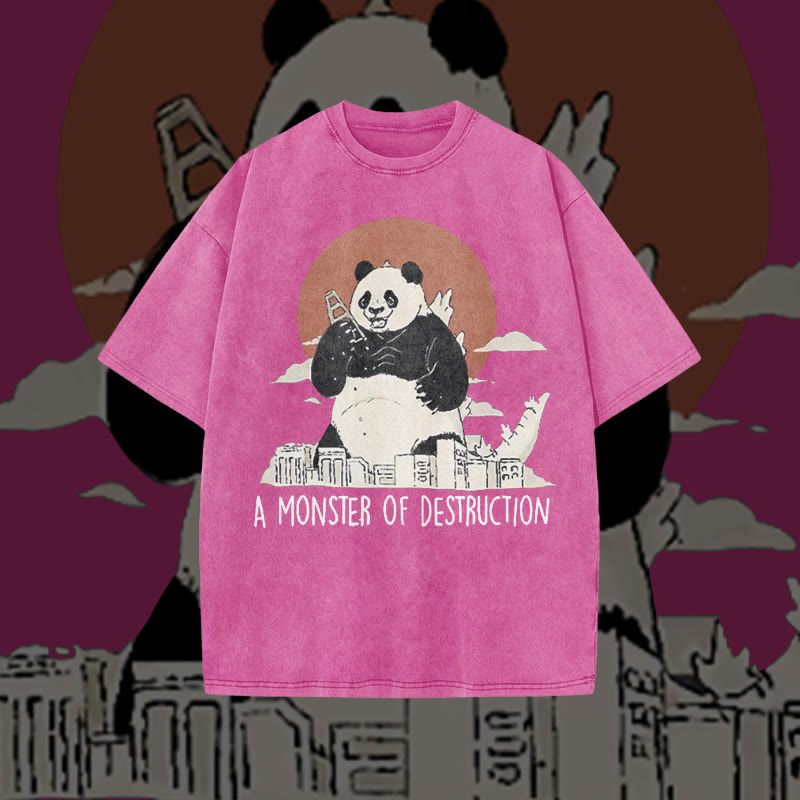Unisex A Monster Of Destruction Print Acid Washed T-shirt
