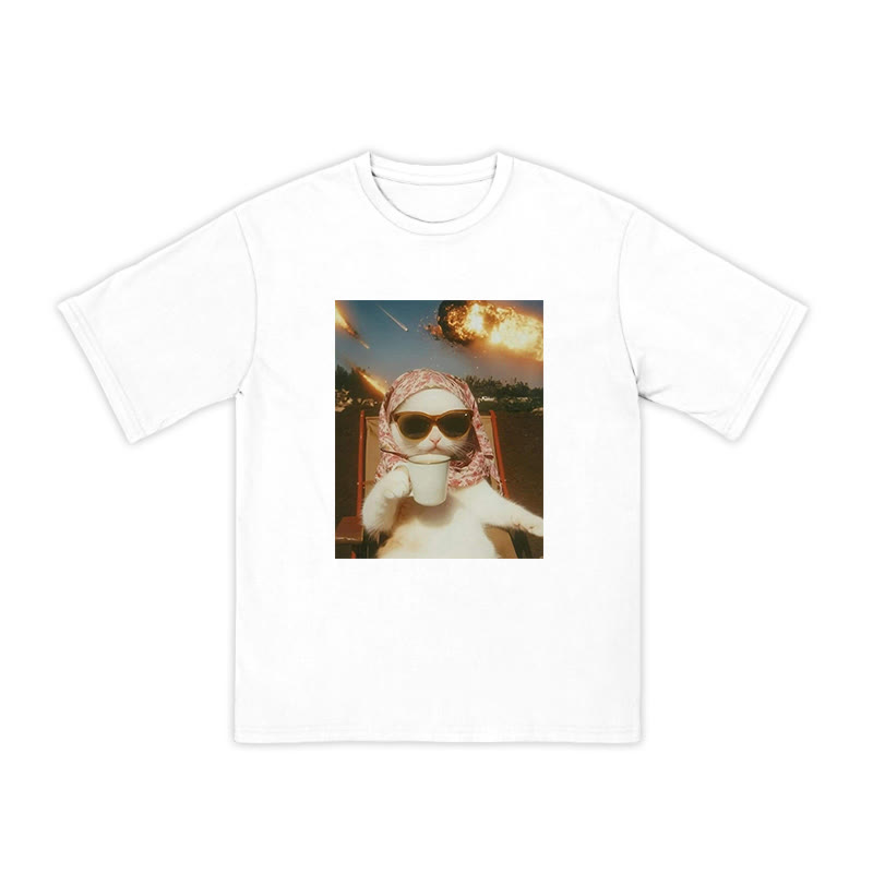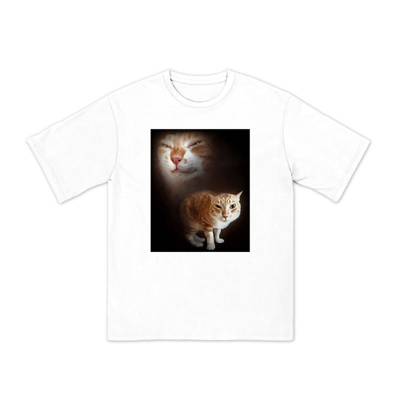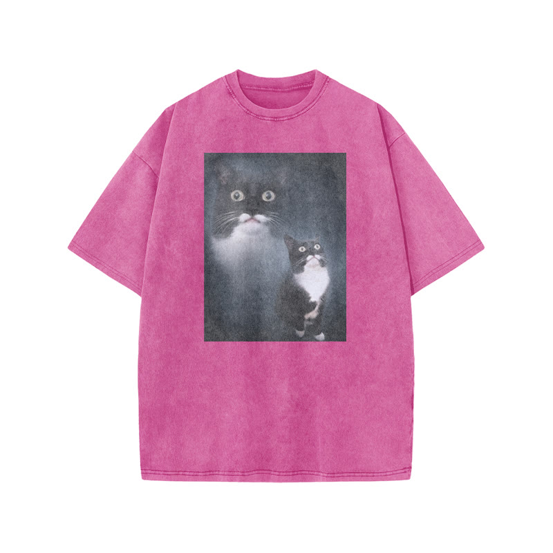 Unisex Cat Making Funny Faces Print Acid Washed T-shirt