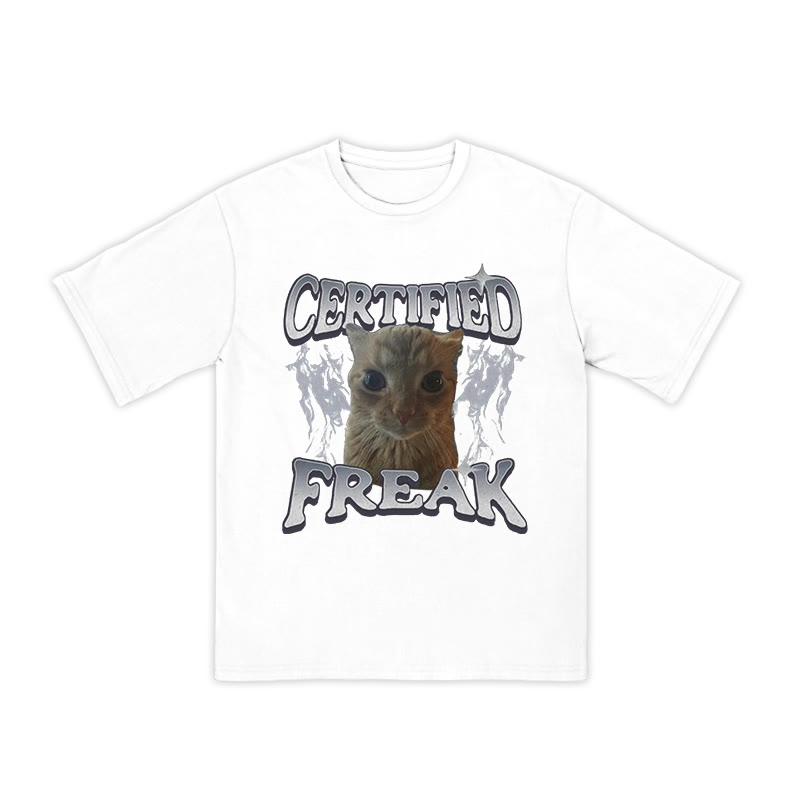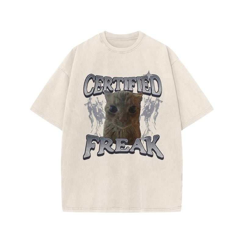 Unisex Certified Freak Funny Cat Print Acid Washed T-shirt