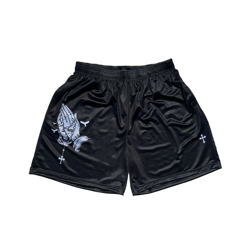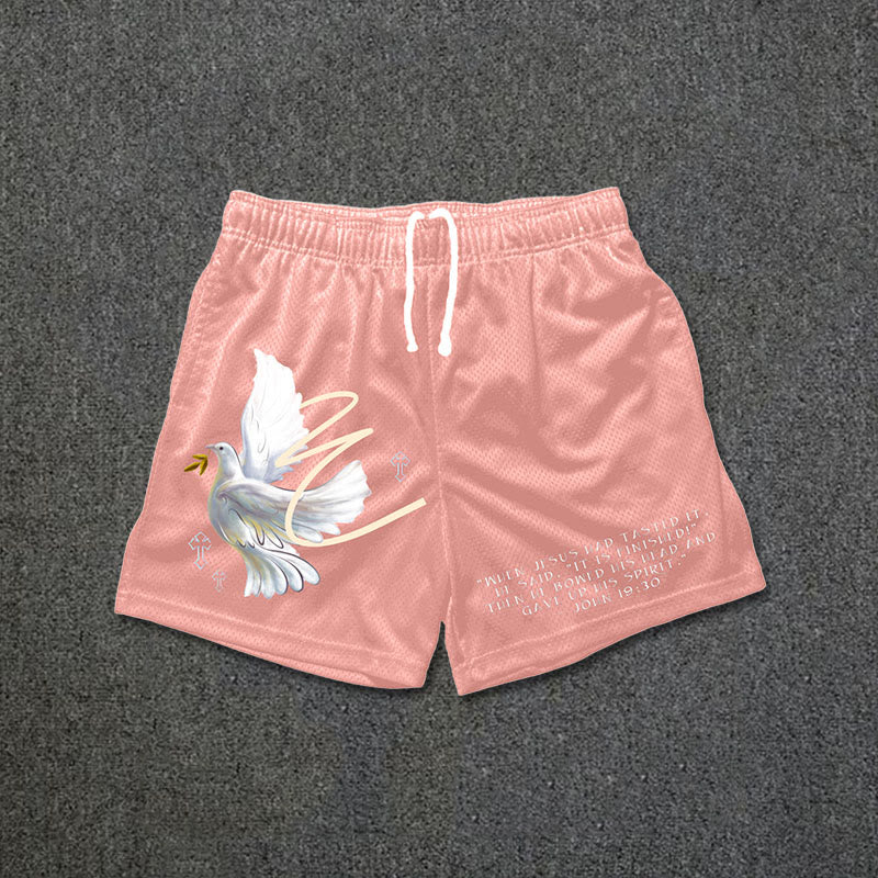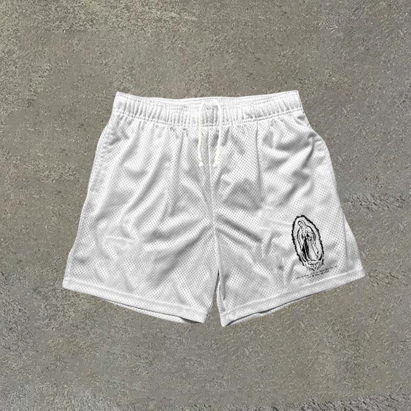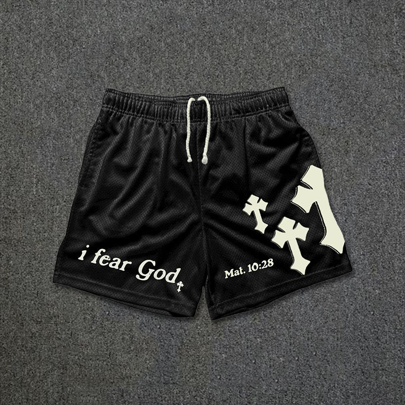 As Long As I Am Here,You Do Not Need To Fear My Child Print Mesh Shorts