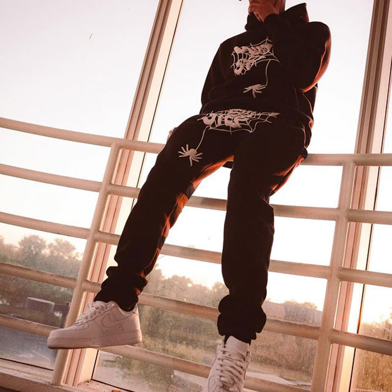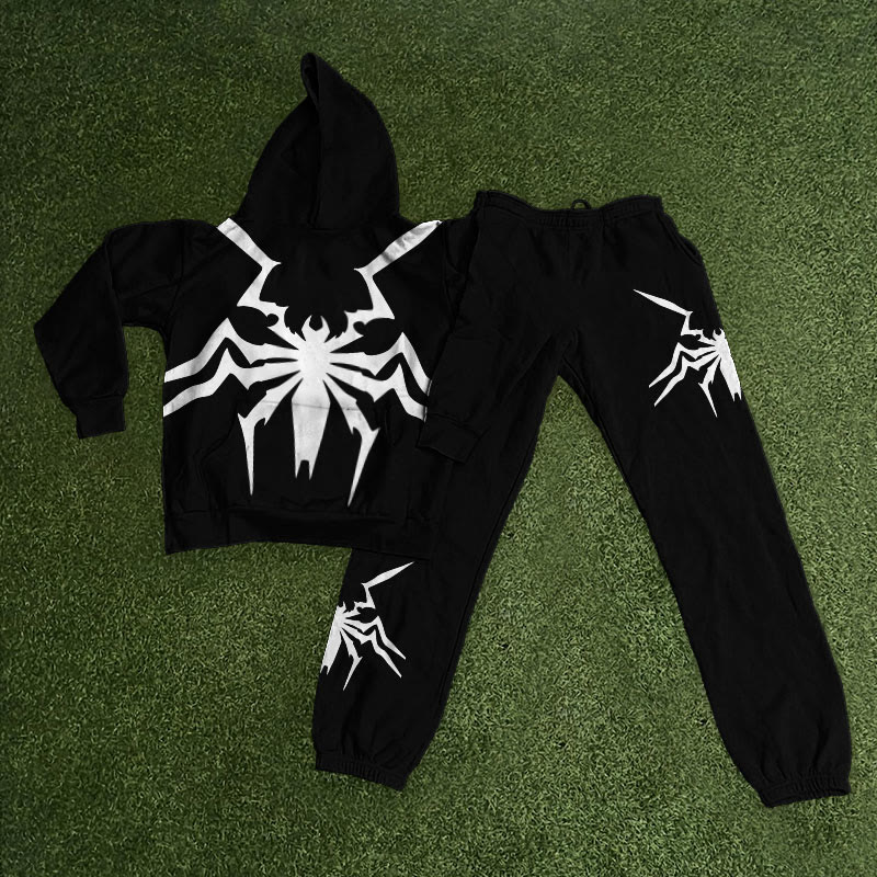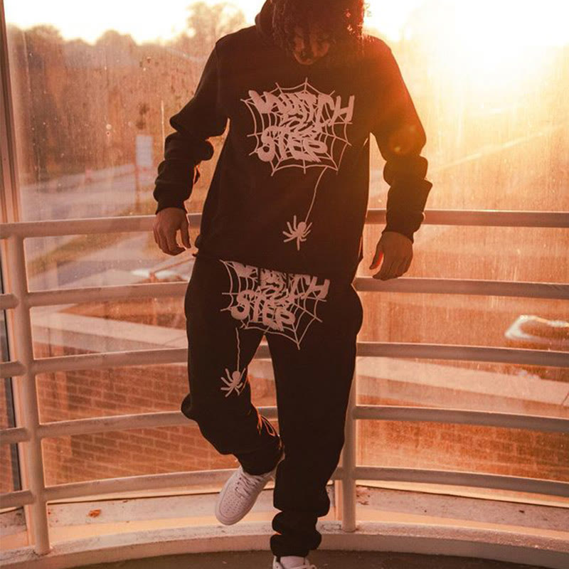 Street Style Watch Your Step Spider Web Print Hoodie Set