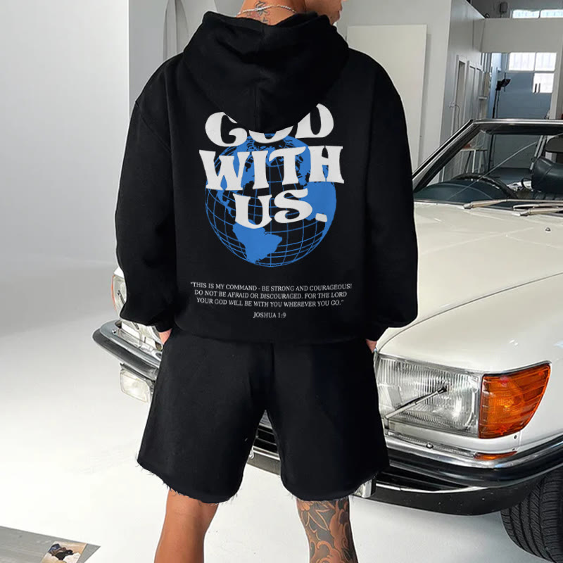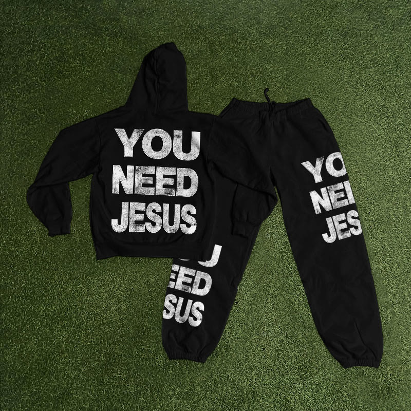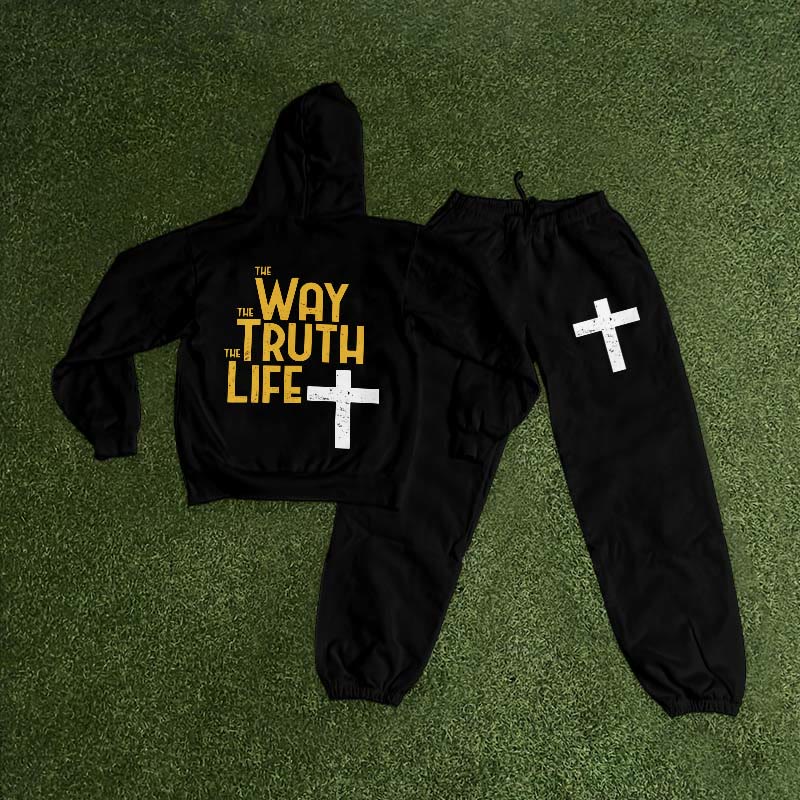 Men's Yahuah Cross Letter Printing Hoodie Two-piece Set