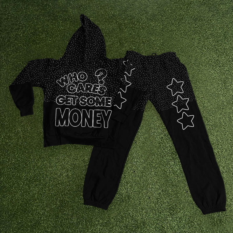Who Cares Get Some Money 𝚅2 Print Hoodie Set