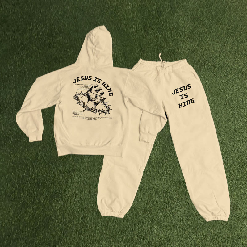 Unisex Jesus Is King Print Hoodie And Shorts Set