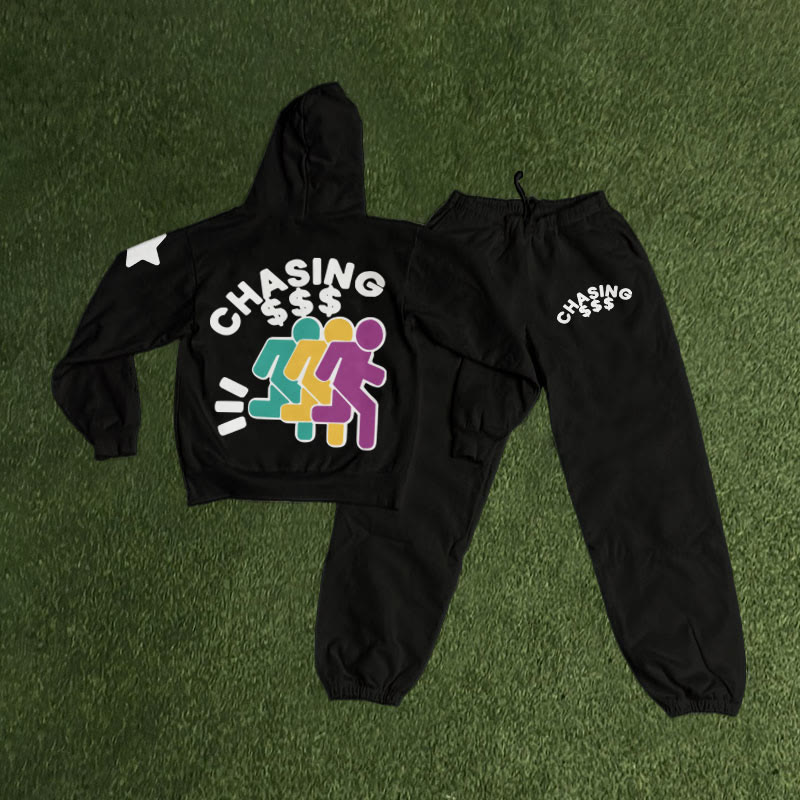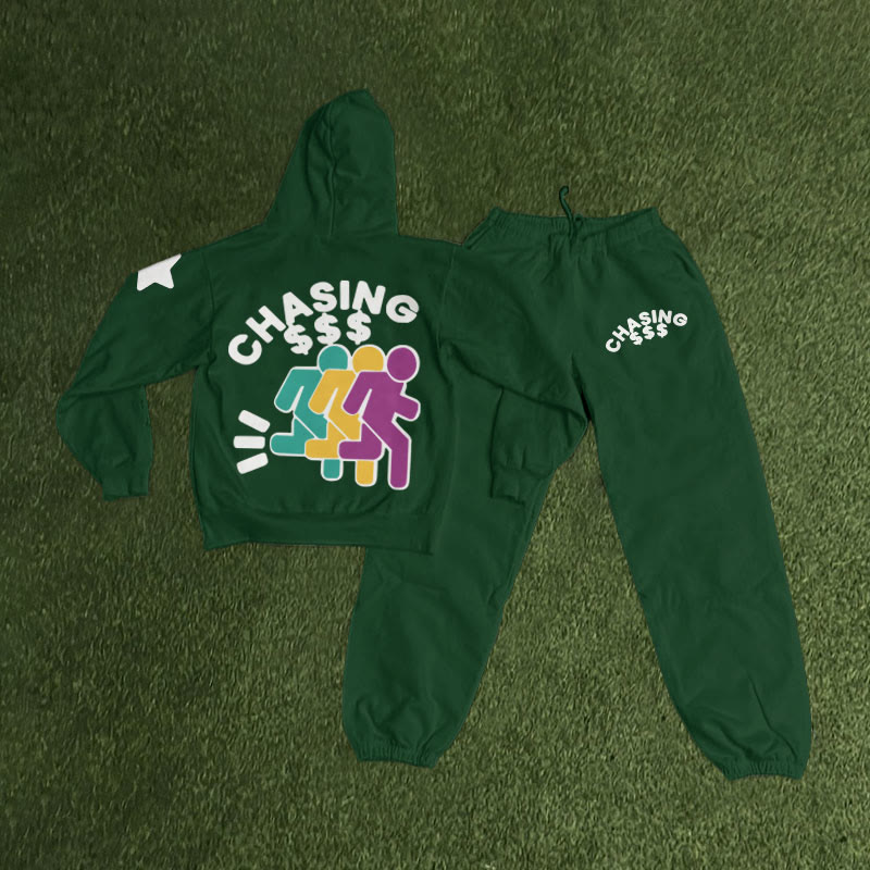 Men's Who Cares Get Some Money Chasing Money Print Hoodie Set