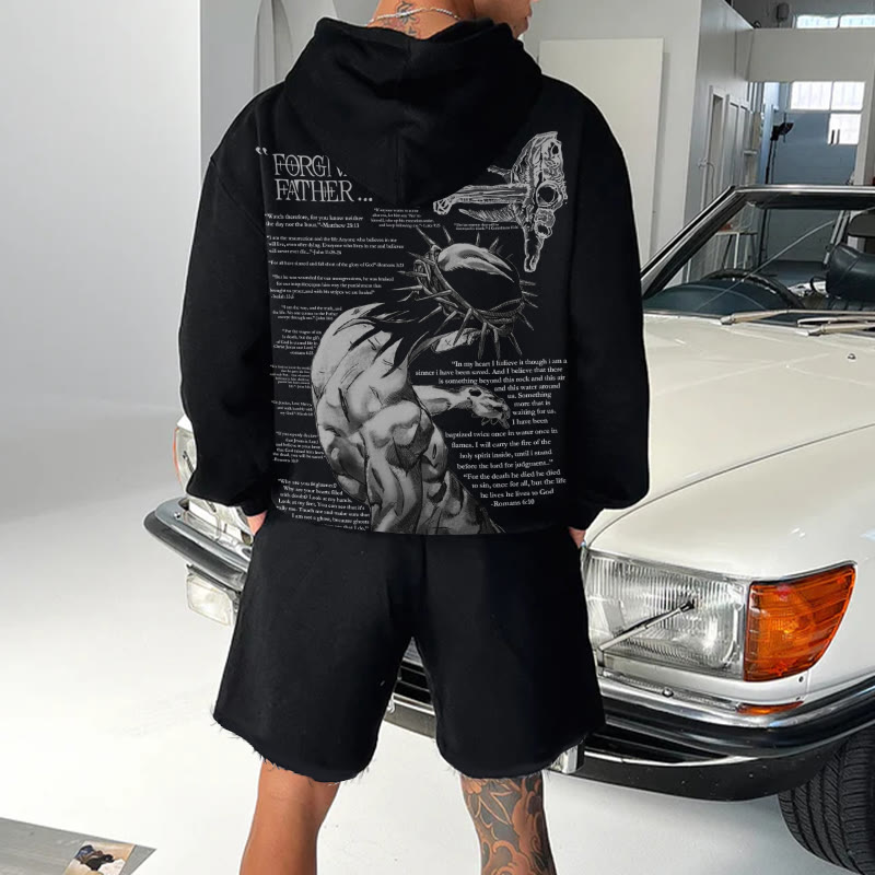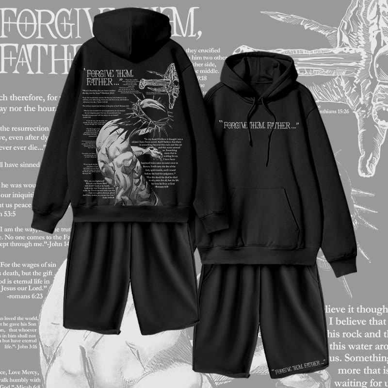 Unisex 100% Forgive Them,Father Bible Verses Print Hoodie And Shorts Set
