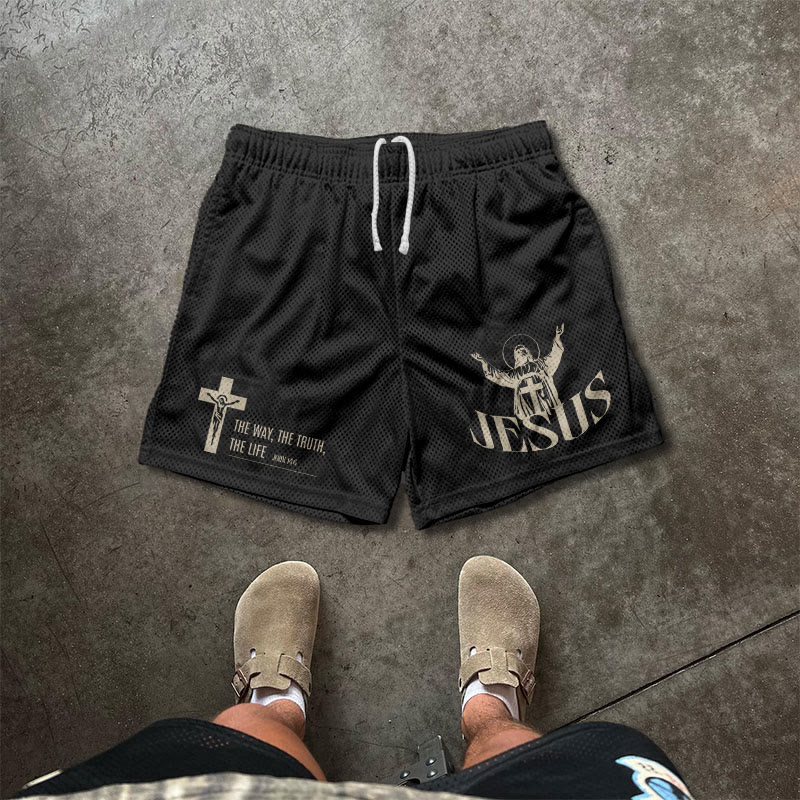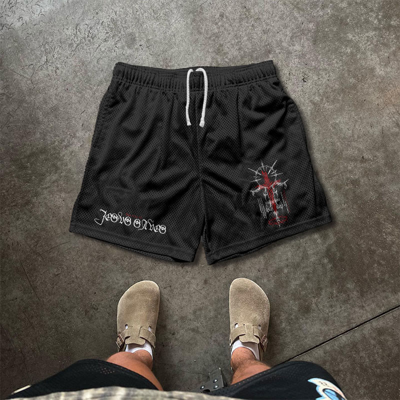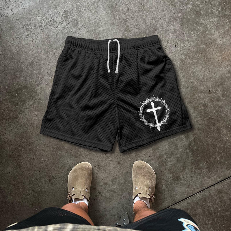 Jesus Cross Print Causal Mesh Shorts