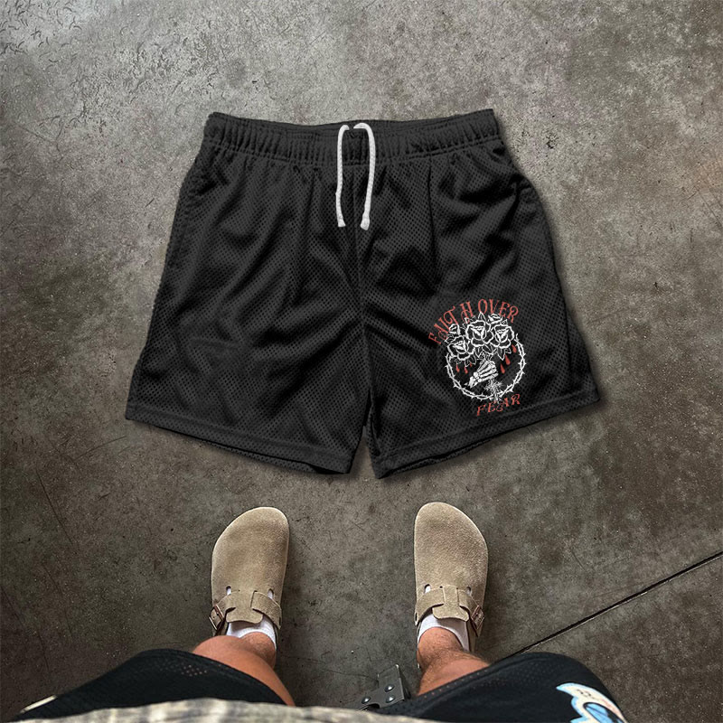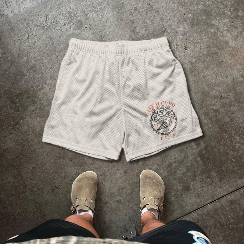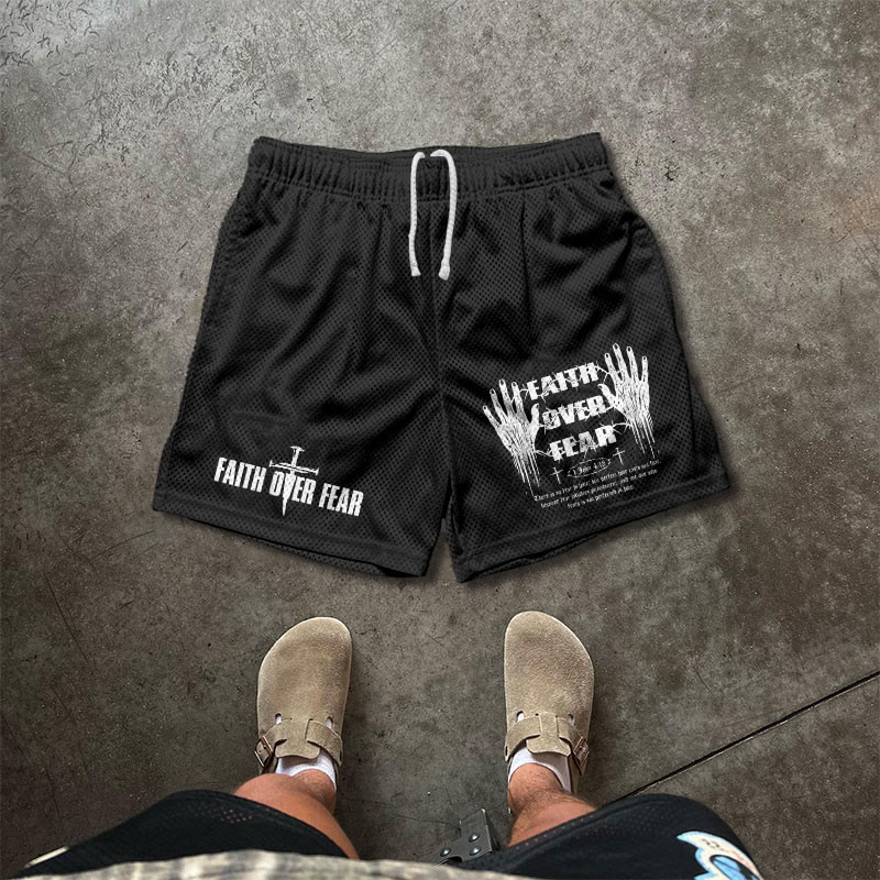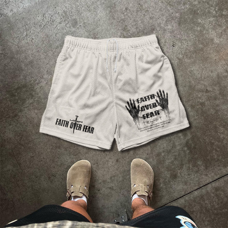 Faith Over Fear Print Mesh Shorts