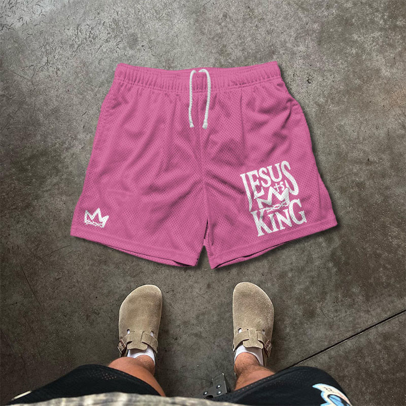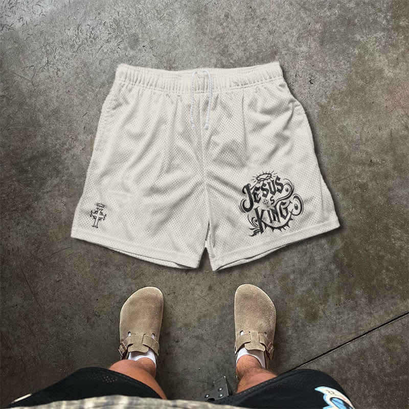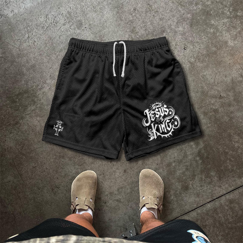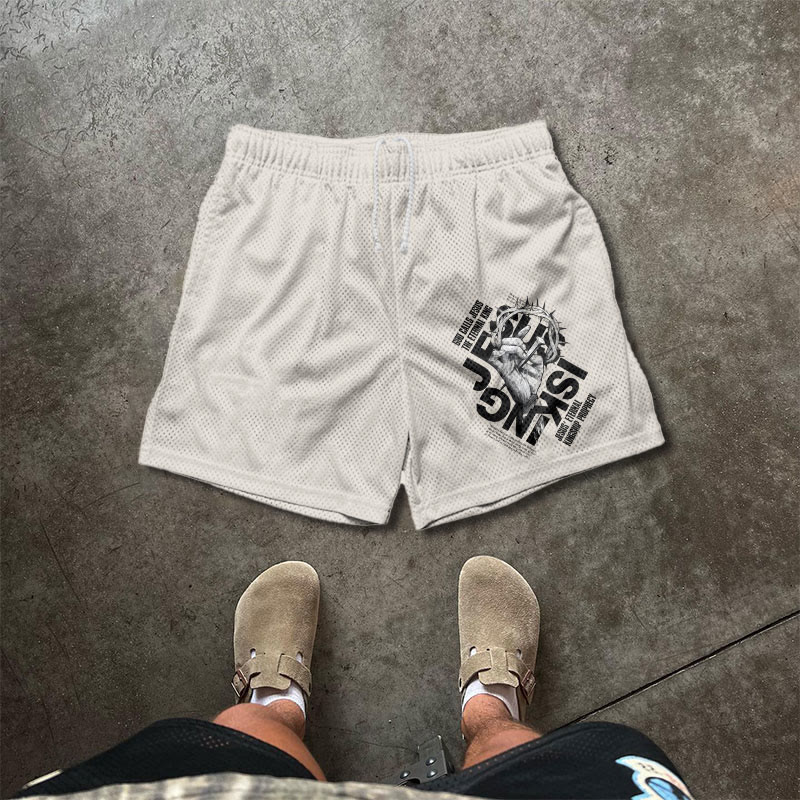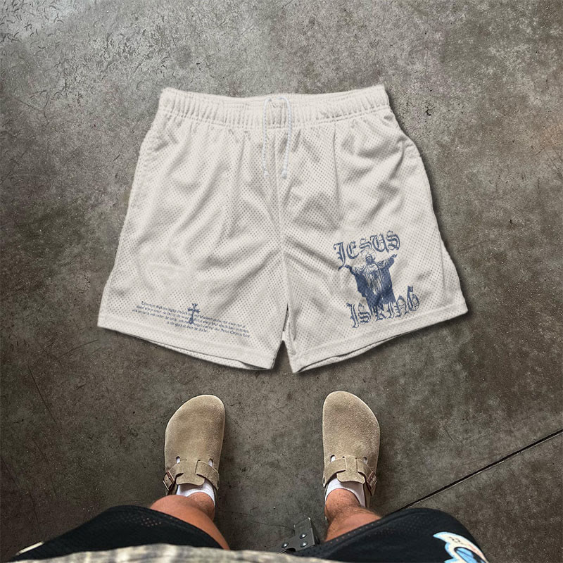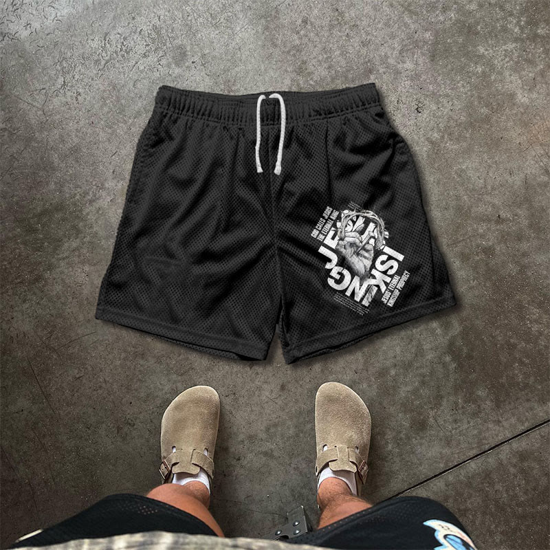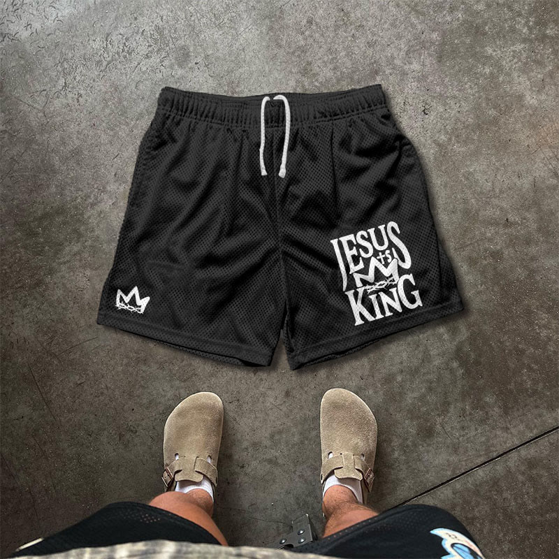 JESUS IS KING Print Causal Mesh Shorts