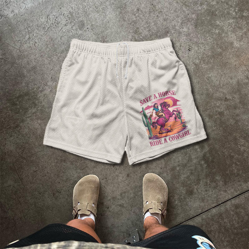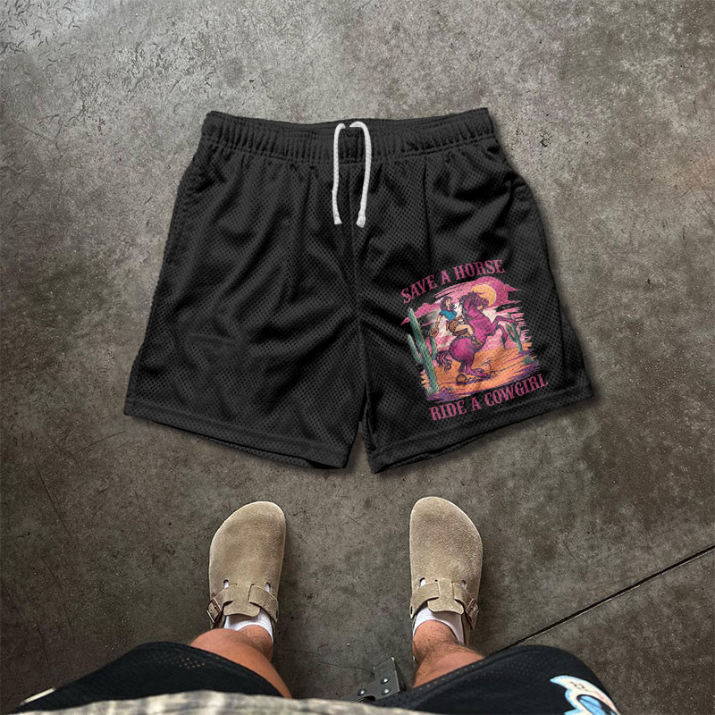 Ride A Cowgirl Print Causal Mesh Shorts