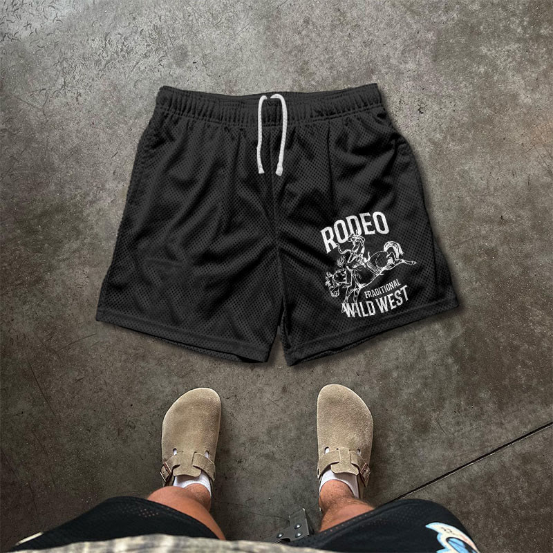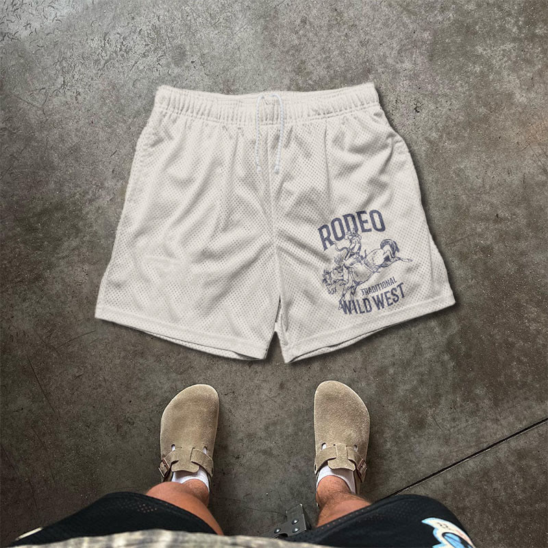 RODEO WILD WEST Print Causal Mesh Shorts