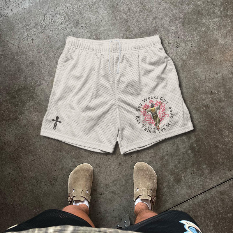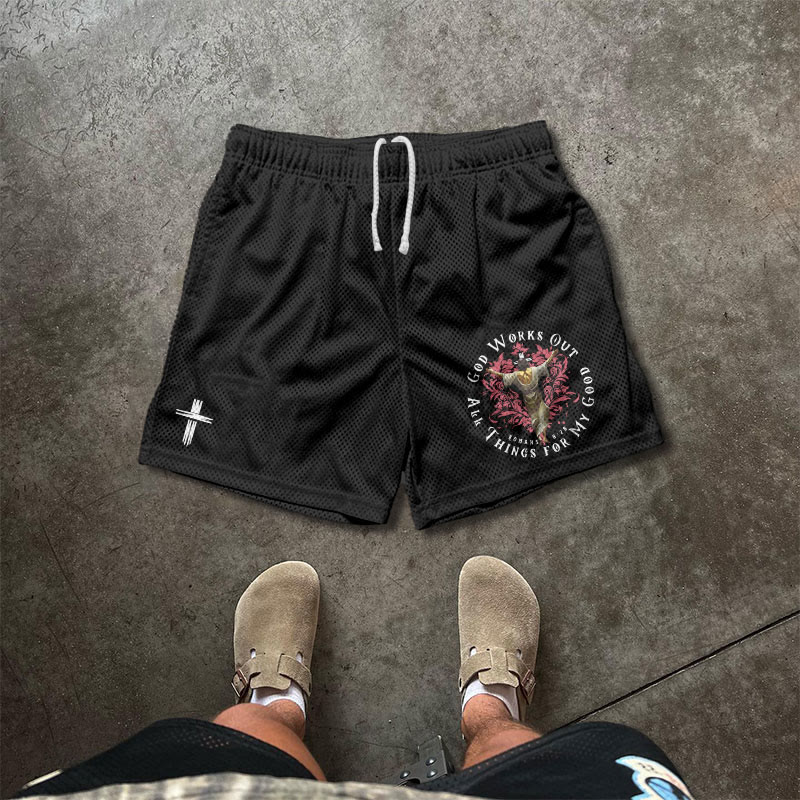GOD WORKS OUT Print Causal Mesh Shorts