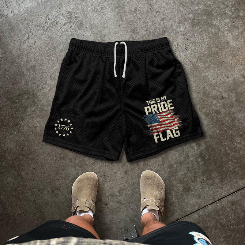 This Is My Pride American Flag Print Causal Mesh Shorts
