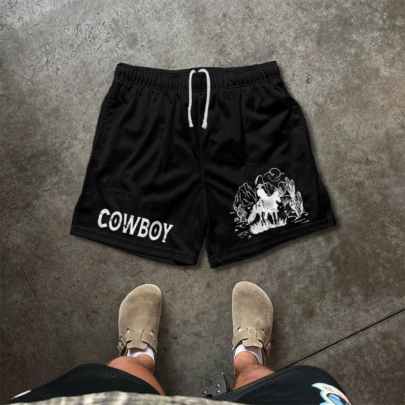 COWBOY Print Causal Mesh Shorts