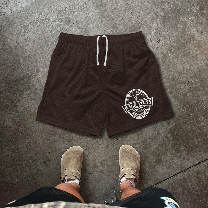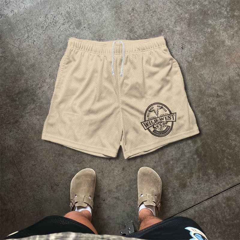 WILD WEST Print Causal Mesh Shorts