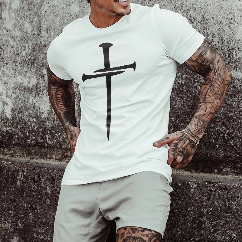 Christian Cross Pattern Print T-shirt