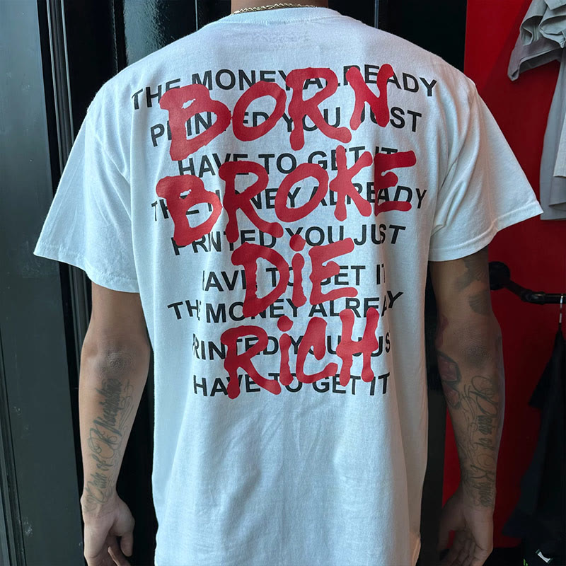 Born Broke Die Rich Print T-shirt